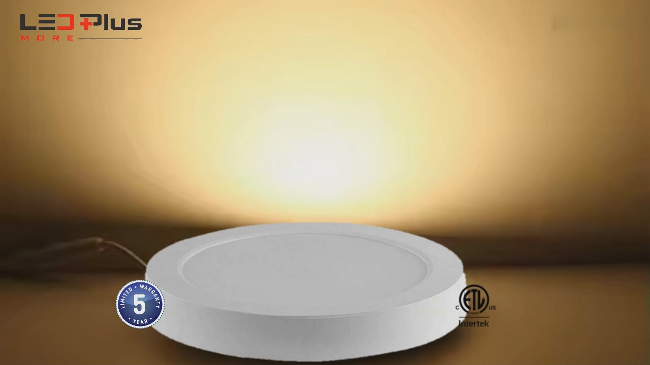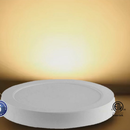 This integrated LED surface mount downlight is an ultra-thin, sleek fixture with smooth white trim. It can be installed directly onto most round or octagonal junction boxes and is designed for commercial or residential use. The CCT (Correlated Color Temperature) can be adjusted in the field to suit different environmental needs. Ideal for residential spaces, offices, hallways, utility rooms, and commercial areas such as hotel rooms.